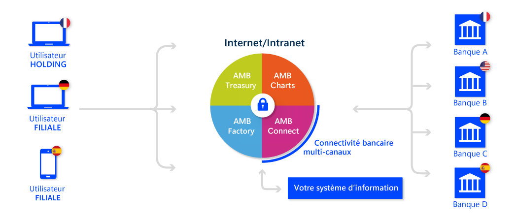Cegid Allmybanks est décliné en 4 modules complémentaires et une connectivité multi-protocoles (SWIFTNet, EBICS, FTP)